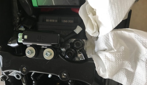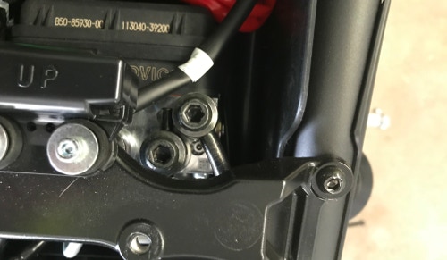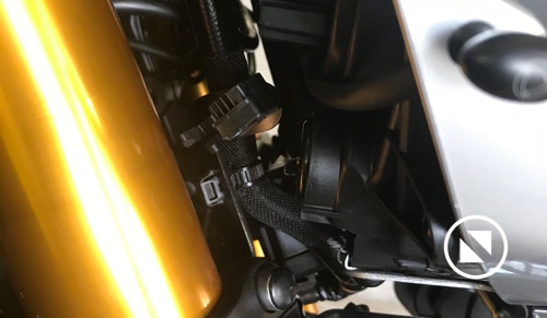 Es geht noch ein wenig weiter. Die Actioncamera muss wieder an ihren Platz. Nun ist eine Garmin Virb meine Begleiterin. Ich kann sie vom Navi aus fernsteuern. ist noch recht bequem so. Aber der Sound kommt nicht richtig zur Geltung. Wahrscheinlich ist das Gehäuse zu dicht. Für die Befestigung such ich dann noch schwarze Scheiben und Schrauben. Eine neue Auspuffanlage ist nun auch verbaut.